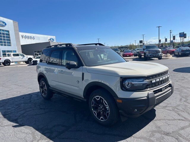Our Transparent Young Ford Ogden Pricing includes: 1. The best available pricing with standard rebates. Low APR offers may reduce the available rebates. Please contact dealer for details. 2. $1,000 credit for standard financing through the dealership. This allows us to keep our pricing low. Cash or outside financing may affect the advertised price. Please see dealer for details. 3. $1,500 Trade In Assistance: We need trade-ins. Trade in assistance applies to qualified trade-ins (generally clean titled, 2014 and newer, under 100K miles). See dealer for details. Additional rebates (like military, college graduate, returning customer, business owner...etc) may provide additional savings for those that qualify and may be posted for your reference. Accessories: Any pre-applied accessories are not automatically posted. Please see dealer for details as well as options you may want installed. Market adjustments. There are a few models Ford makes that have an used vehicle market value higher than the original MSRP. Please see dealer for details. While we strive to be 100% accurate with our online pricing, mistakes and technical errors do happen. Please contact the dealership to confirm your best pricing and options. Desert Sand 2025 Ford Bronco Sport Outer Banks 4WD 8-Speed Automatic 1.5L EcoBoost