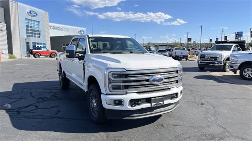 Our Transparent Young Ford Ogden Pricing includes: 1. The best available pricing with standard rebates. Low APR offers may reduce the available rebates. Please contact dealer for details. 2. $1,000 credit for standard financing through the dealership. This allows us to keep our pricing low. Cash or outside financing may affect the advertised price. Please see dealer for details. 3. $1,500 Trade In Assistance: We need trade-ins. Trade in assistance applies to qualified trade-ins (generally clean titled, 2014 and newer, under 100K miles). See dealer for details. Additional rebates (like military, college graduate, returning customer, business owner...etc) may provide additional savings for those that qualify and may be posted for your reference. Accessories: Any pre-applied accessories are not automatically posted. Please see dealer for details as well as options you may want installed. Market adjustments. There are a few models Ford makes that have an used vehicle market value higher than the original MSRP. Please see dealer for details. While we strive to be 100% accurate with our online pricing, mistakes and technical errors do happen. Please contact the dealership to confirm your best pricing and options. Star White Metallic Tri-Coat 2025 Ford F-350SD Platinum 4WD 10-Speed Automatic 6.7L High Output Power Stroke V8 Diesel 4WD, ABS brakes, Alloy wheels, Compass, Electronic Stability Control, Front dual zone A/C, Heated door mirrors, Heated front seats, Heated rear seats, Illuminated entry, Low tire pressure warning, Navigation System, Remote keyless entry, Traction control.